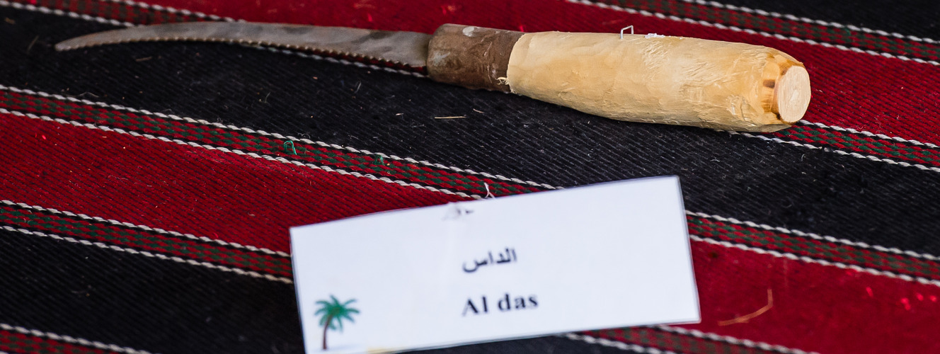 The history of this tool in the UAE dates back to the 3rd millennium BC, as excavators found a sickle (das) with a serrated edge in the (Al Dour) and (Maleiha) sites. Das is the sickle used to remove weeds and ears of wheat during harvest.