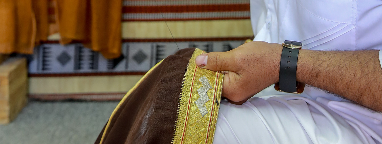 The men’s outer robe (bisht) is one of the traditional costumes in the countries of the Arabian Gulf, as they are worn by males of all ages above a thob or a dishdasha. The bisht holds a significant place in a man's attire, bestowing upon him dignity and modesty, rendering it indispensable for leaving one's home. However, as society has progressed, the bisht has become impractical for daily tasks and mobility. Consequently, it is now reserved for formal occasions, holidays, and festive gatherings, such as weddings.