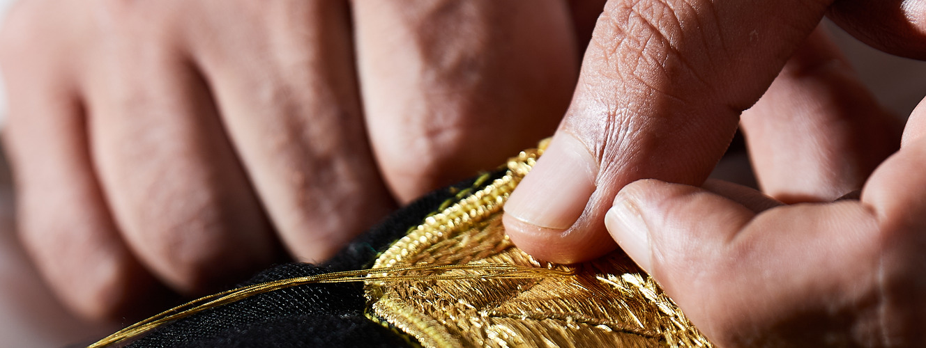 The first is darbawiya, which is manual tailoring using original zari embroidery.