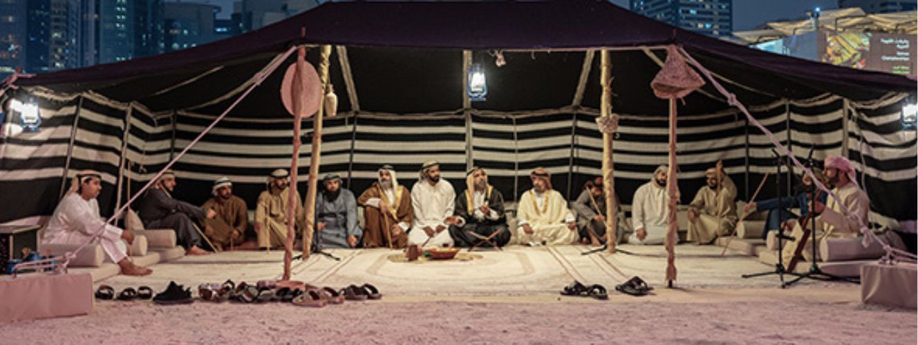 The Emirati Majlis (‘council’ or ‘assembly’) has been an essential part of social and political life in the United Arab Emirates, serving as a forum for the community to discuss issues and to raise important matters with elders and the Sheikhs. Merchants and legal experts also held majalis (plural of Majlis). Because of the significance of the Majlis, the United Arab Emirates, Oman, Qatar and Saudi Arabia applied to inscribe it on the UNESCO Representative List of the Intangible Cultural Heritage of Humanity and it was listed in 2015.