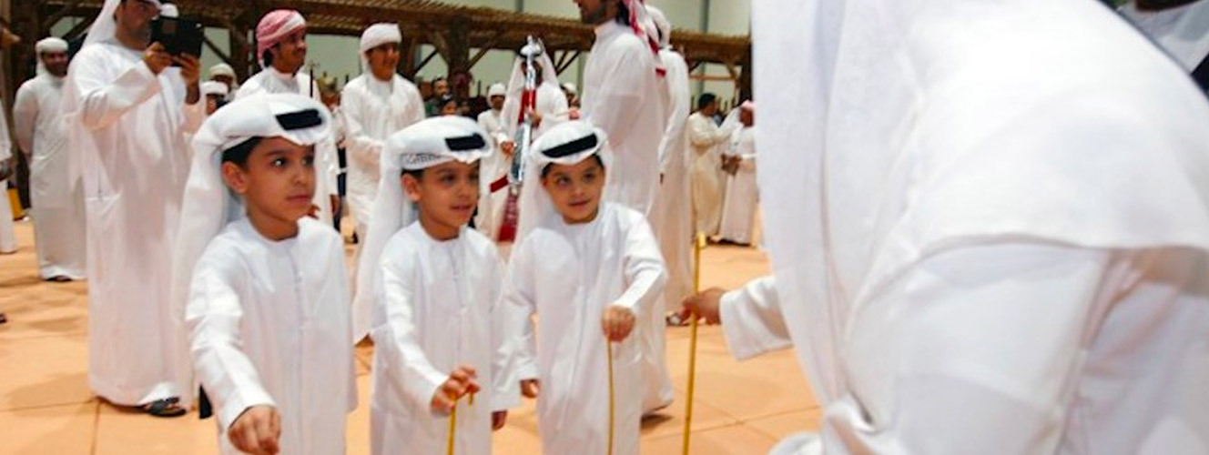 Is Al-Rafza popular? It is widespread in every segment of society and its practitioners are young and old alike. A public performance based on mass participation, parents encourage their children to perform Al-Razfa at events and gatherings – one of the reasons why the dance attracts so many participants. Children learn this heritage art through stimulation and gradual practice, as well as by watching the groups that perform Al-Razfa at social events such as weddings, festivals and anniversaries.