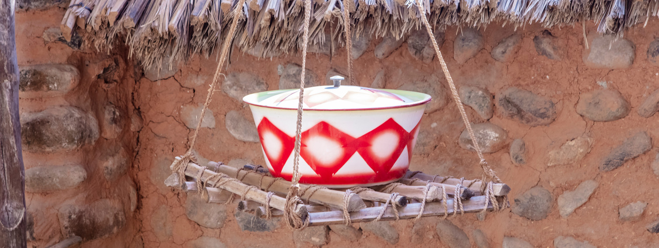Haban, mandaban, mawress, and obayba are containers that are made of leather and are used for storing various items, including coffee beans, rice “aish”, wheat “barr” and other grains and foodstuffs. Dharf is a container in which ghee is placed, jarba is a water container and maqras or makhadh is used for churning. Fanar, salboukh and qera’a are lighting equipment. They are comprised of two stones similar to granite and marble, and either a substance, which is similar to silk and extracted from Calotropis (ashkhar) plants, or a cotton wick is placed between them to light the fire. Not only that, copper qudoor (pots) are used for cooking, and wooden bowls are used for serving food. Other necessary tools include a number of khashouqah "spoons", mallass "a long spoon used for stirring food, raha which is a grain and bazar (spice) mill, as well as coffee dilal and fanajeen (pots and cups) and tools that are used in making these instruments.
