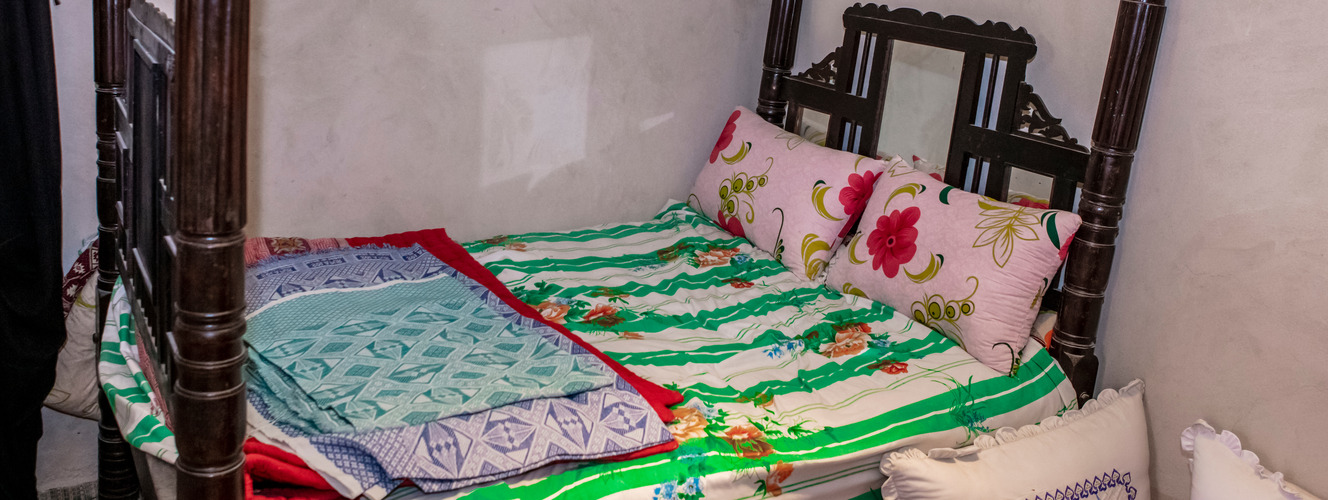 No traditional house can go without a zawliyah or sijjadah, which is a rug or rectangular mat that is made of canvas or leather and sometimes woven from goat wool and decorated with beautiful-coloured drawings. Its edges are trimmed, and people can then sit on the zawliyah or use it as a blanket in cold weather. It is also used as a prayer rug.